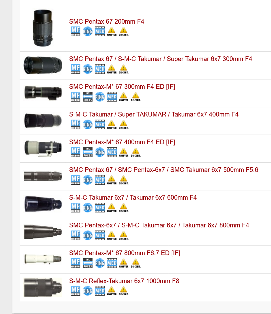 circa i lunghi fuochi per il medio formato, ricorderei il Pentacon 500/5,6 in attacco Pentacon Six che accoppiato al duplicatore Arsenal diviene un pur non luminosissimo 1000 mm. di qualità più che accettabile.