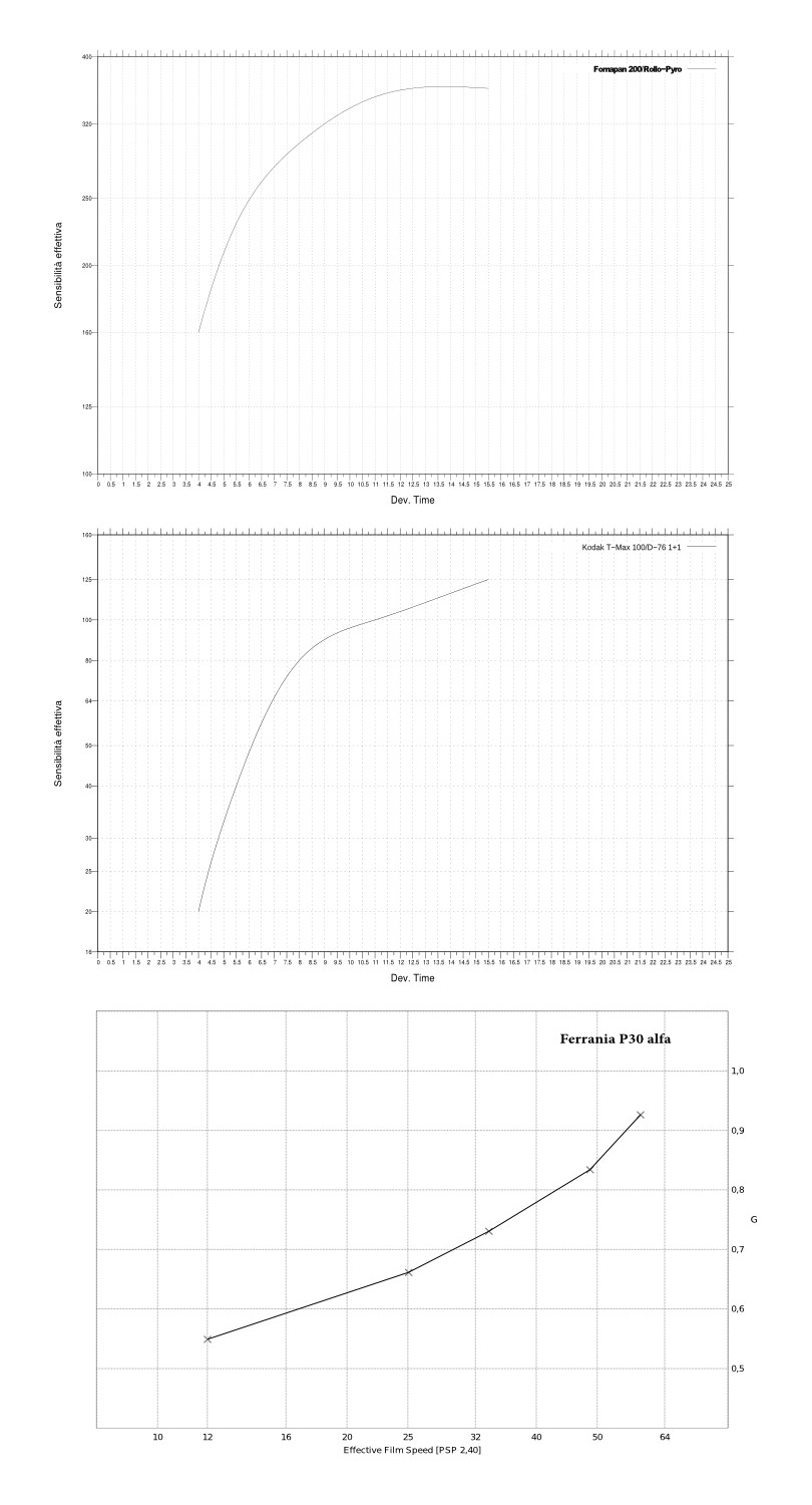 - Curve Contrasto/Sviluppo e Sensibilità Effettiva/Sviluppo