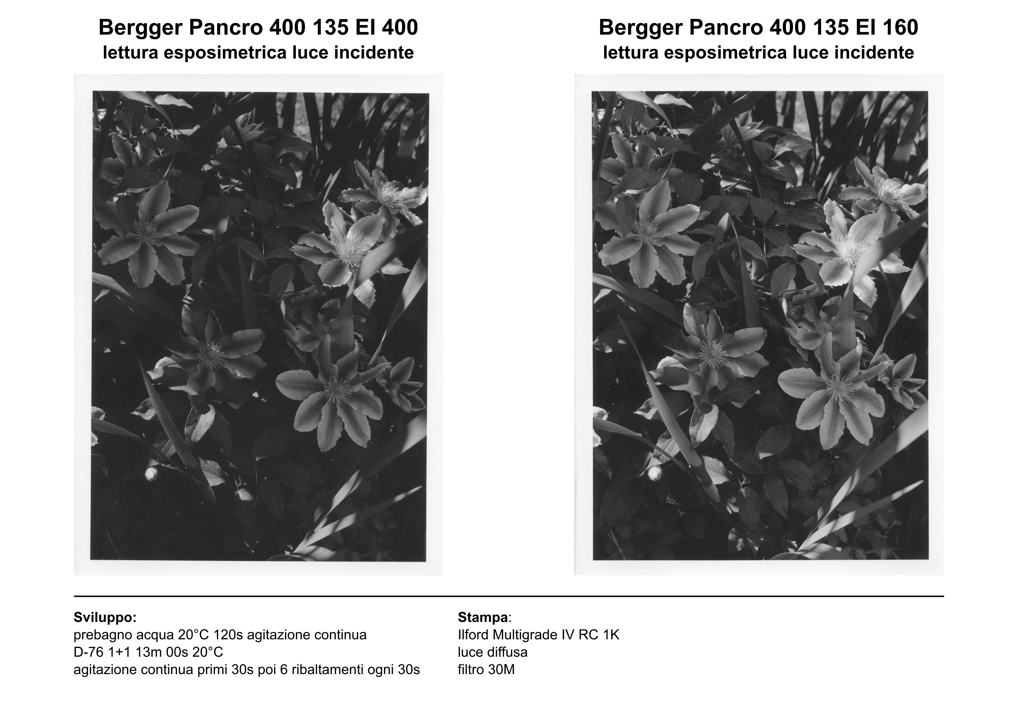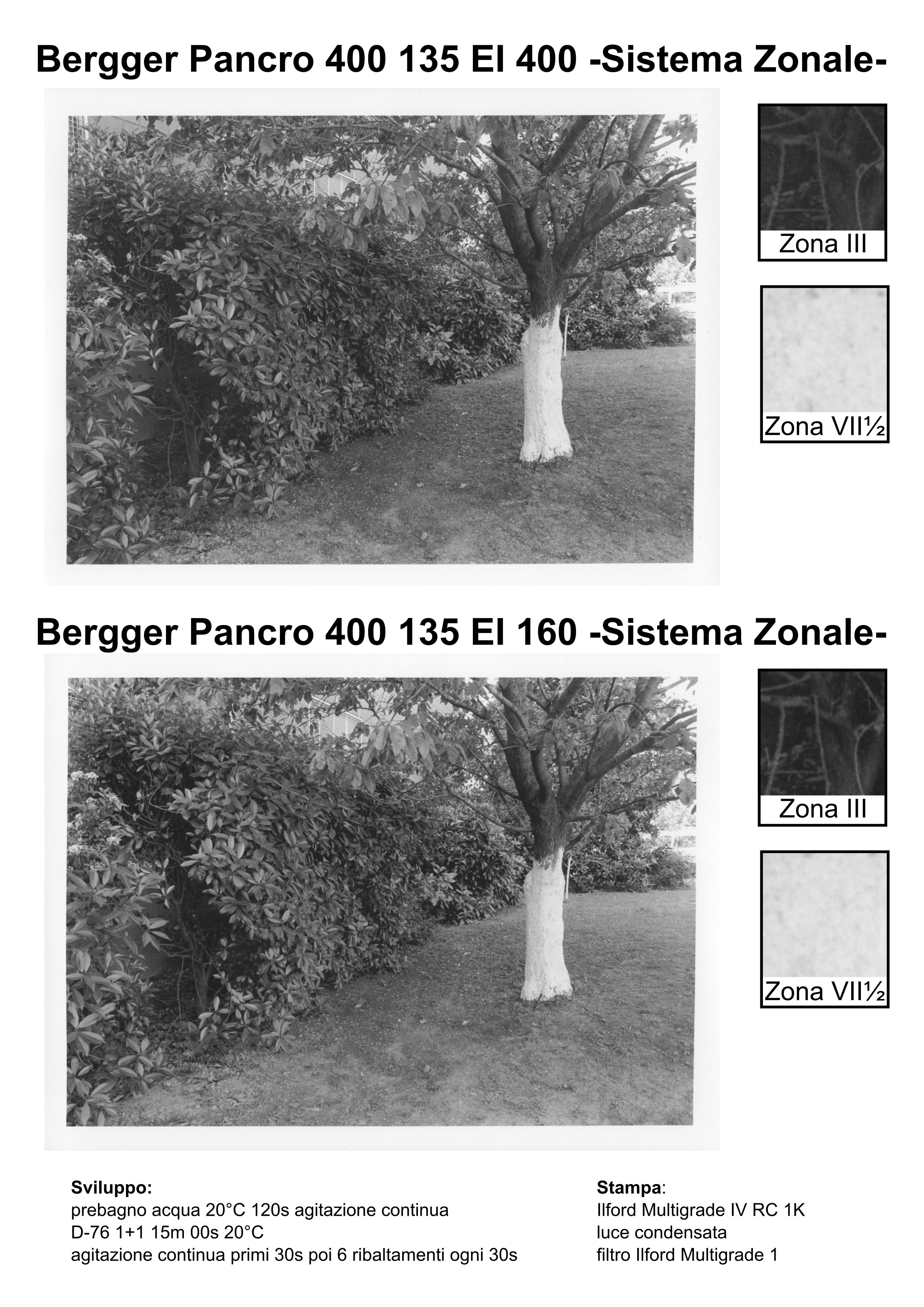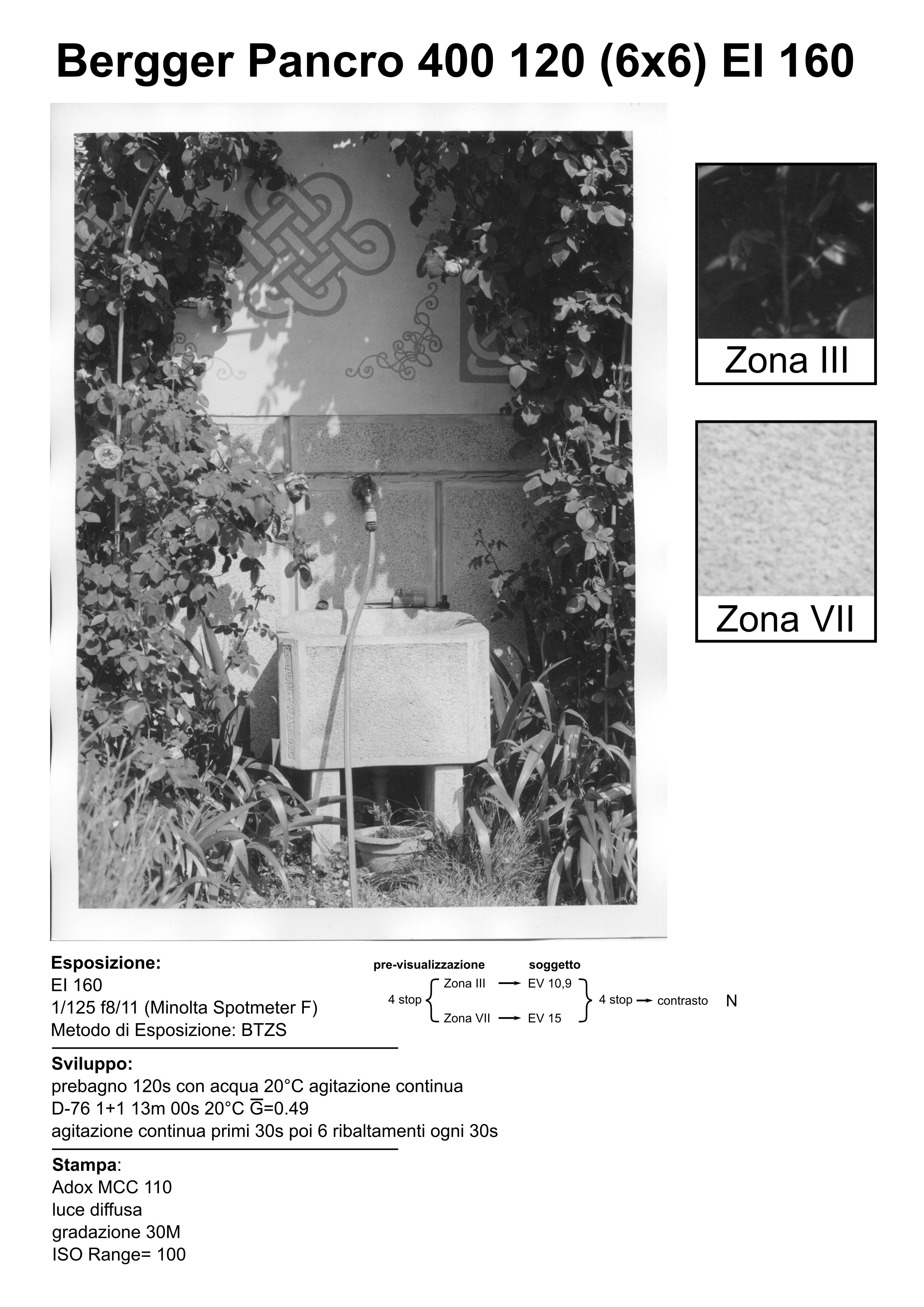 - Bergger Pancro 400 è stata esposta sulle ombre usando la sensibilità (160) trovata dall'analisi delle curve caratteristiche per uno sviluppo N.