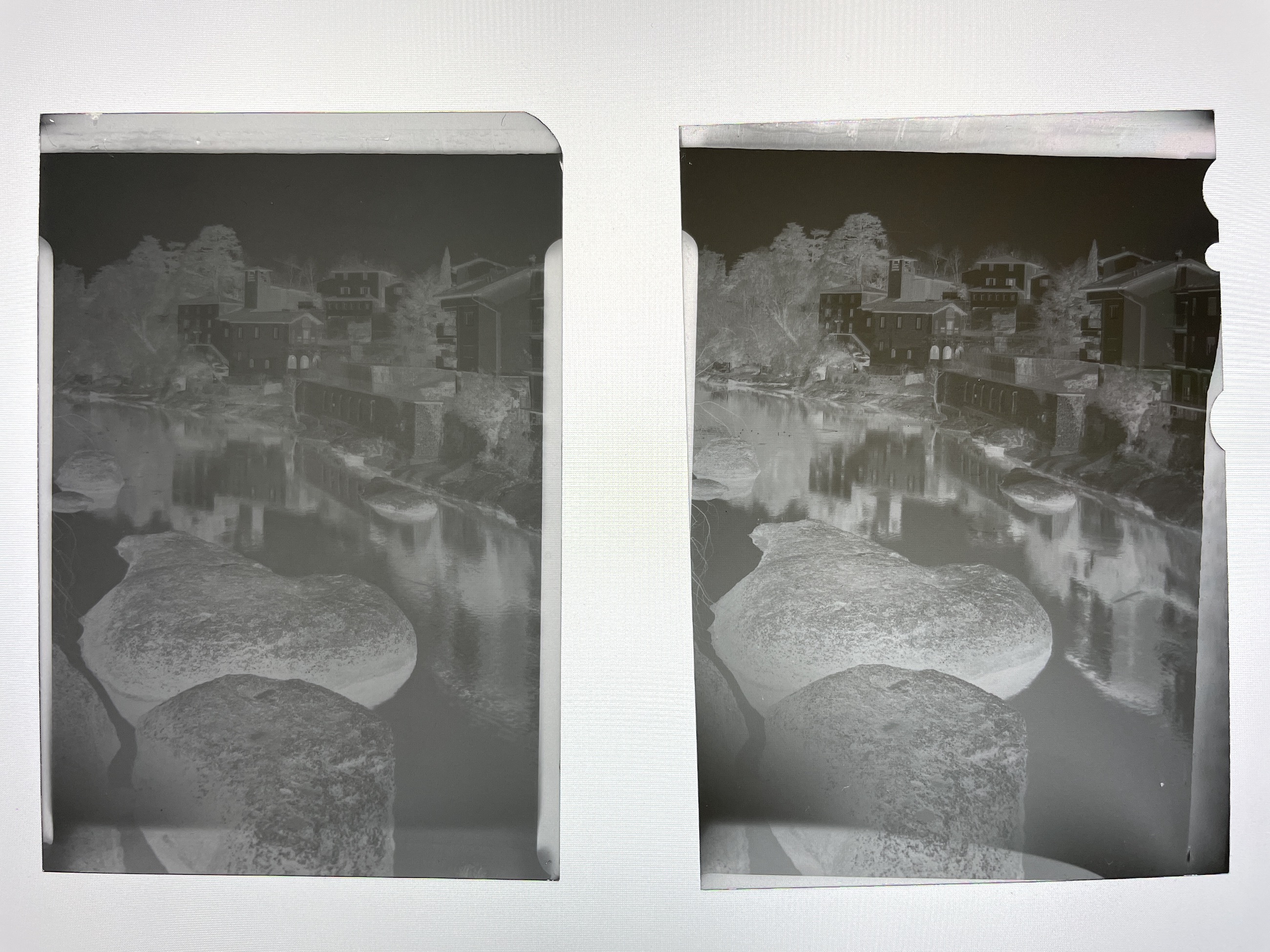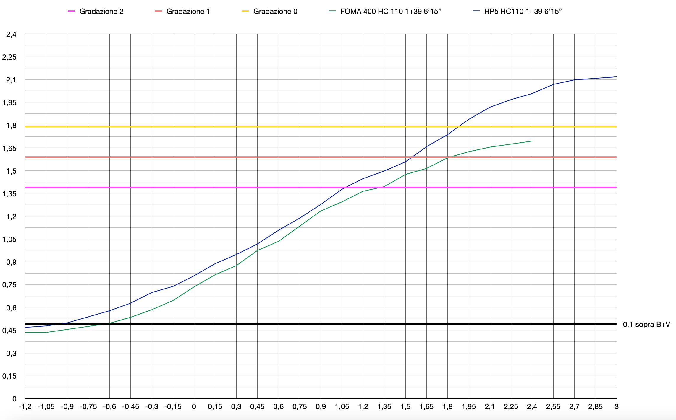 Pertanto le due pellicole (piane 2,25 x 3,25) sono state sviluppate con lo stesso bagno HC110 1+39 x 6'30" che per entrambe portano ad un gradiente attorno all' N.