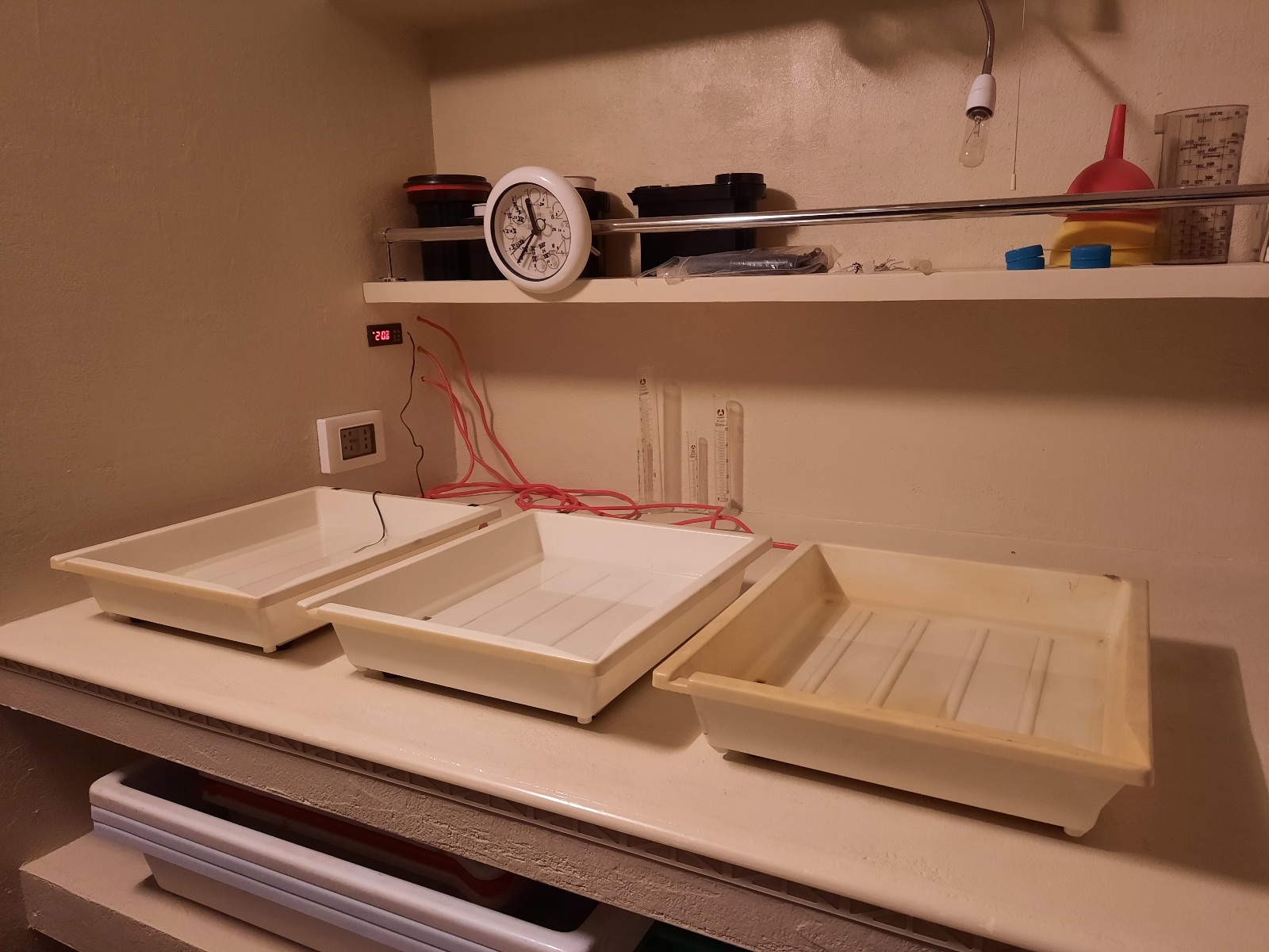 Su suggerimento di @Ptr85 ho posto i trasformatori in una scatola esterna opportunamente forata per l'aereazione . Avendo poco spazio in C.O. ho previsto di installare a parete 3 prese 12V così da togliere i dispositivi riscaldanti quando non più necessari e installato sul coperchio un commutatore per alimentare le prese direttamente bypassando il termostato per un eventuale uso diverso.