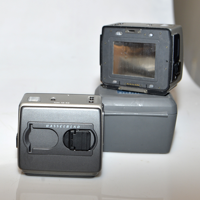 HASSELBLAD H1 composto da: corpo macchina H1 + pentaprisma mod. HV90X + n° 2 dorsi pellicola 120 mod. HM 16-32 + 1 gruppo avvolgitore del dorso HM 16-32 (ossia la parte su cui si inserisce la pellicola ) utile per sostituire velocemente la pellicola senza staccare il dorso dal corpo) + una custodia per gruppo avvolgitore originale Hasselblad + un vetro aggiuntivo con cornicette