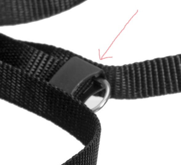 La parte tonda va nell'occhiello della fotocamera e la parte aperta contiene la cinghia.