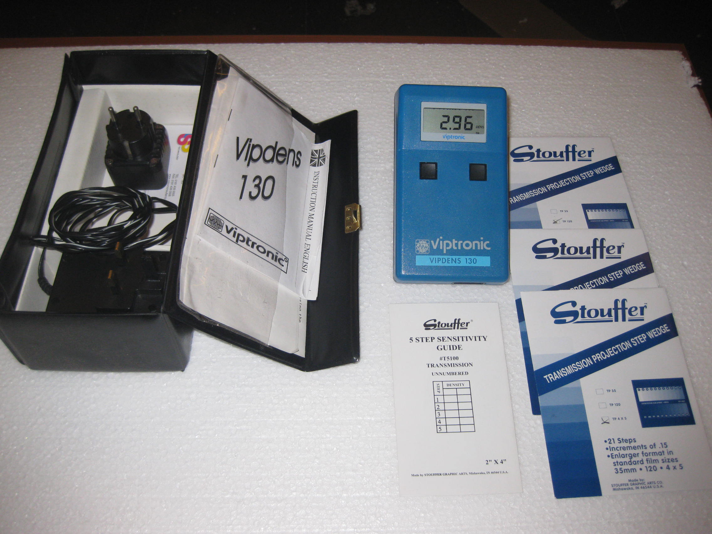 1) [VENDUTO]Densitometro Viptronic Vipdens 130 perfettamente funzionante, scale Stouffer 35mm, 120mm, 4x5, scala per tarare il densitometro 5 step tenute in maniera maniacale, ma non garantisco. 80€+S.S