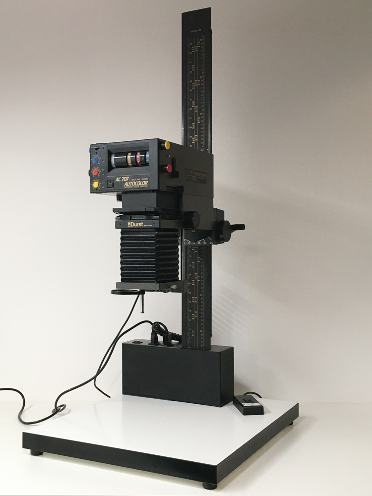 L'ingranditore è dotato di un timer interno collegato all'analizzatore di colore ma con una facile modifica dei collegamenti nella testa si può utilizzare anche con un normale timer esterno (posso effettuare la modifica su richiesta).