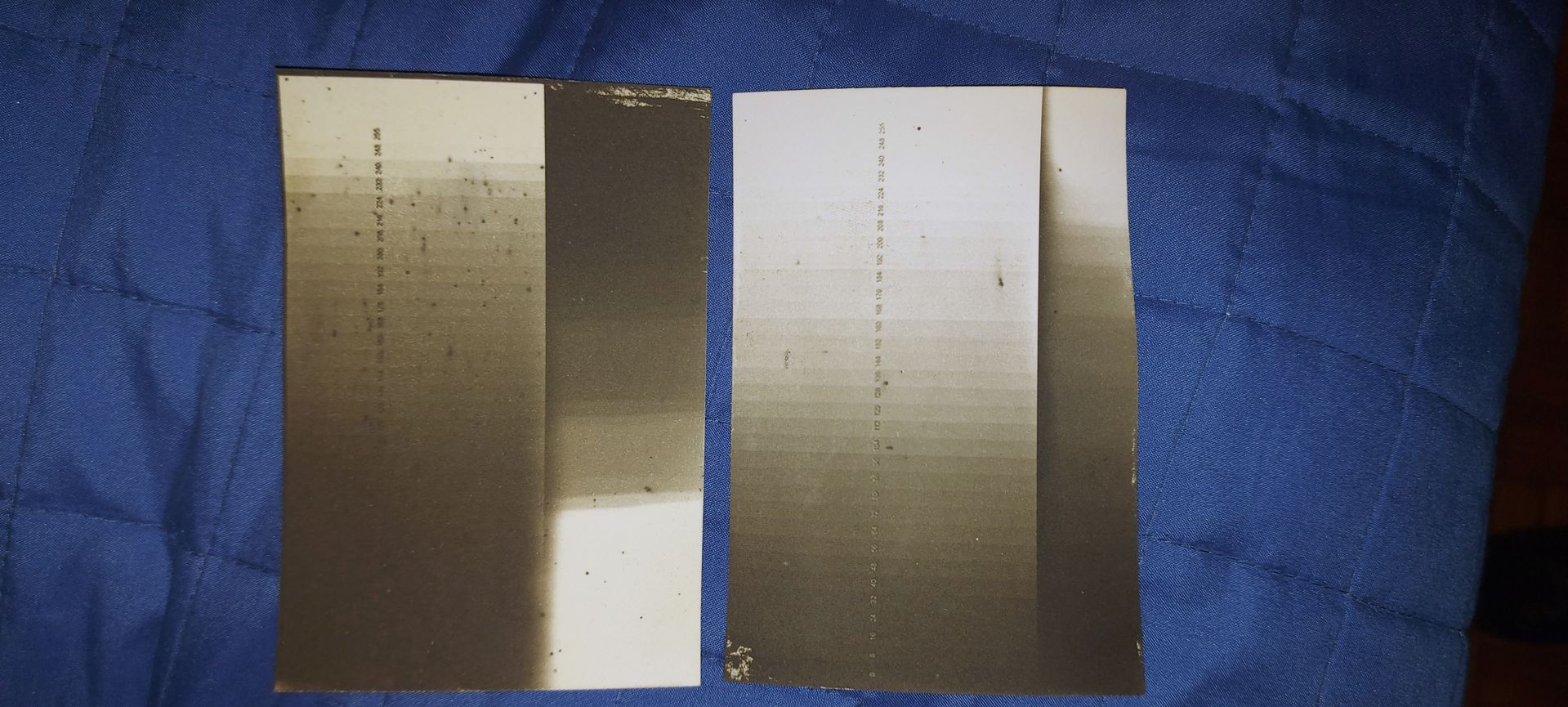 Determinato il tempo per il massimo nero stampiamo una scala di grigi (Stouffer step wedge) ma stampata con la nostra stampante sull'acetato che utilizziamo. Nel mio caso la scala è stata presa da internet ed ovviamente è stata invertita creandone l'effettivo negativo. Sarà magari necessario provare alcune impostazioni della stampante per ottenere un buon negativo, nel mio caso ho aumentato leggermente il quantitativo di inchiostro al fine di avere una buona copertura delle zone più scure del negativo.