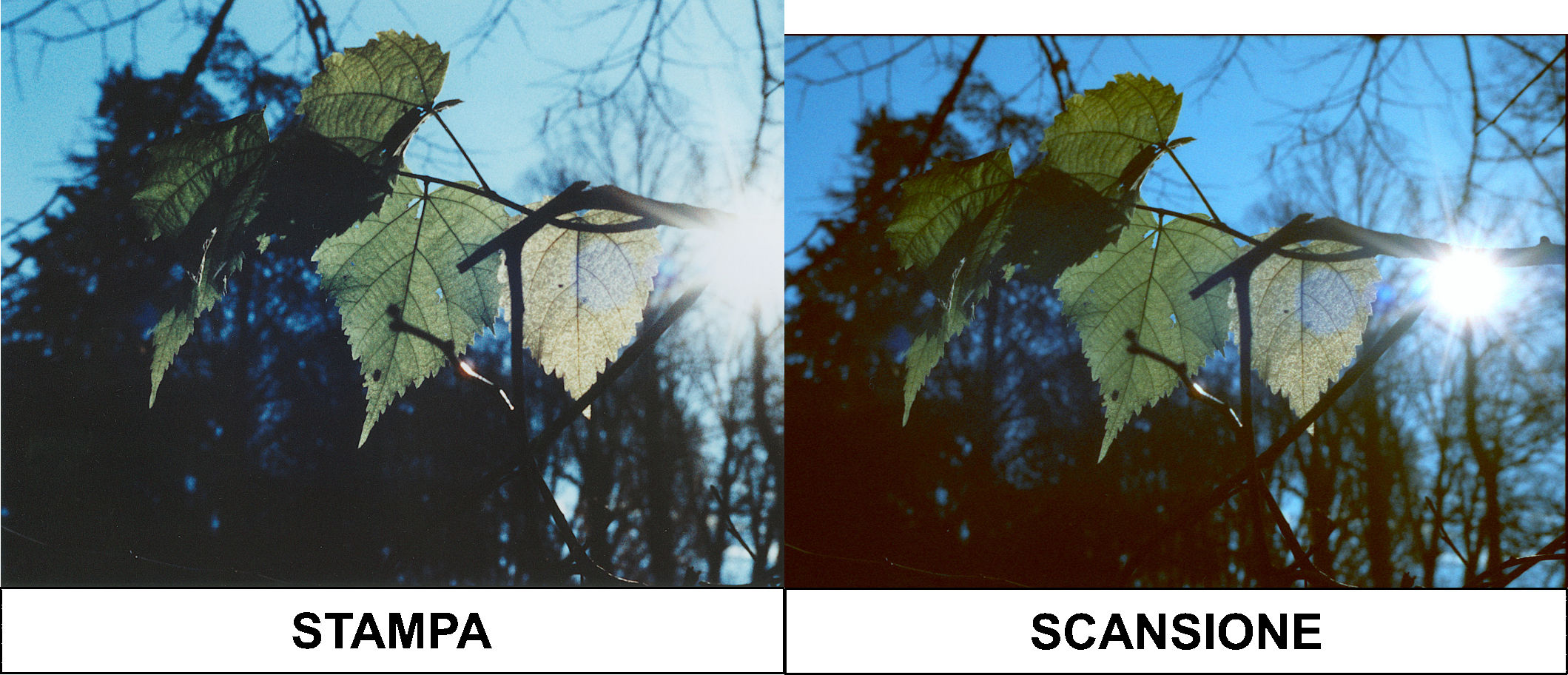 Inoltre la Phoenix 200, se ben lavata dopo il trattamento, non ha maschera per cui la base è completamente trasparente e l'immagine ha i toni e i colori invertiti, per cui ho provato anche ad acquisire un fotogramma come diapositiva per poi invertirla in un programma di fotoritocco; nonostante le mie capacità siano basilari mi sento di dire che i risultati ottenibili, almeno col mio setup, sono sostanzialmente identici. Per contro lo scanner, almeno quelli caserecci come il mio, comincia ad avere grandi difficoltà a “bucare” i neri intensi delle parti più esposte della pellicola il che rende la qualità delle scansioni dei fotogrammi sovraesposti assai bassina.
