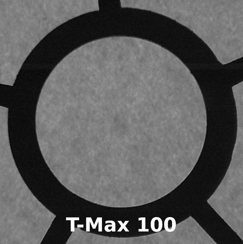 Ma anche senza fare i test, basta mettere la pellicola nell'ingranditore e mettere l'occhio al focometro per rendersi conto che la grana quasi inesistente della Ferrania P-30 è incompatibile con la sensibilità dichiarata: Da queste immagini riprese dall'oculare del focometro si "vede" (mi scuso per la qualità) che la grana della P-30 ha una dimensione paragonabile a quella della T-Max 100 ma essendo una 80 iso a tecnologia classica la grana avrebbe dovuto essere ben più presente.