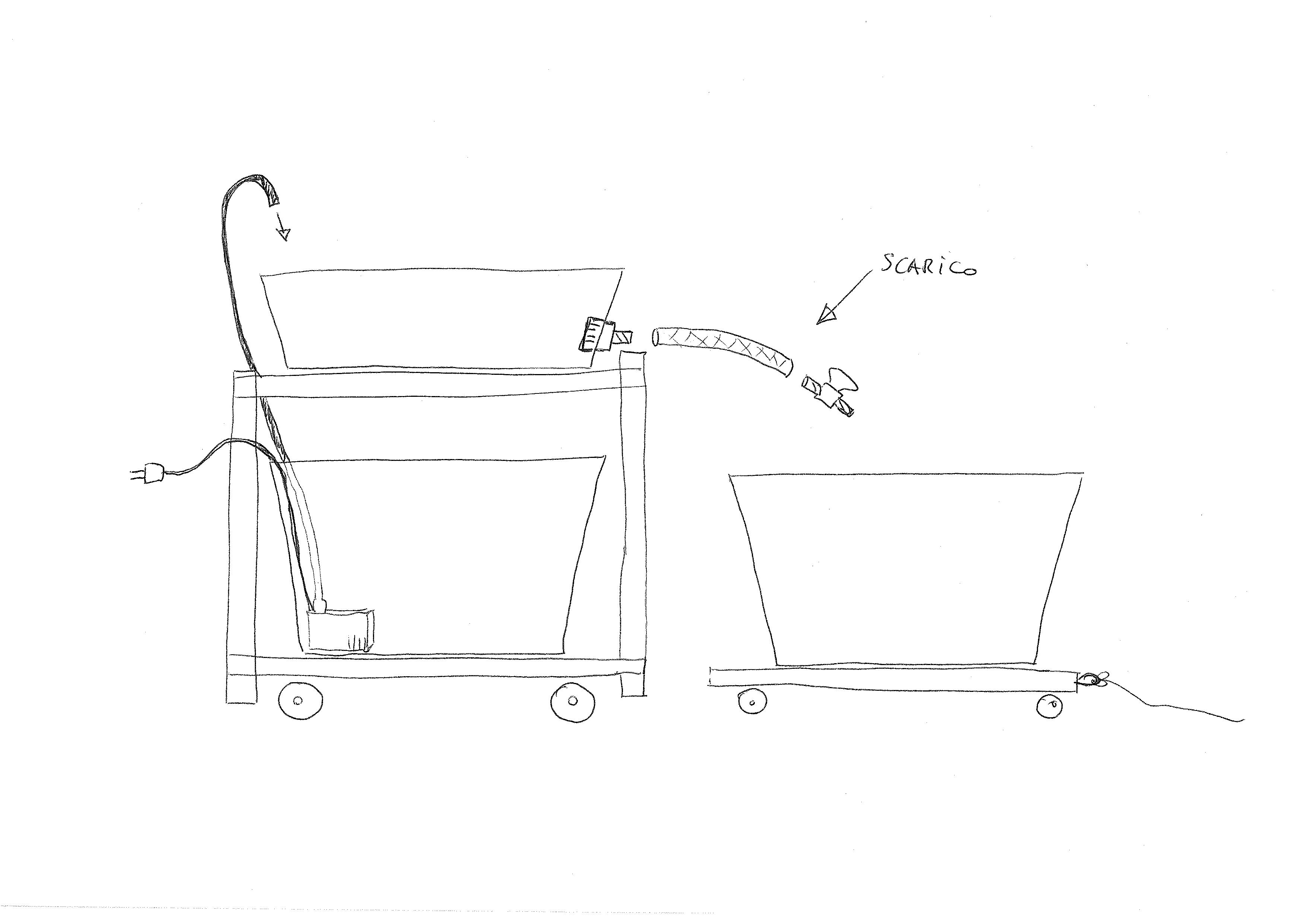 l'idea è che il tutto è facilmente trasportabile per svuotare e riempire. All'inizio usavo solo la vasca piccola ed andavo "a mano" fuori a svuotarla e riempirla... ora va moooolto meglio.